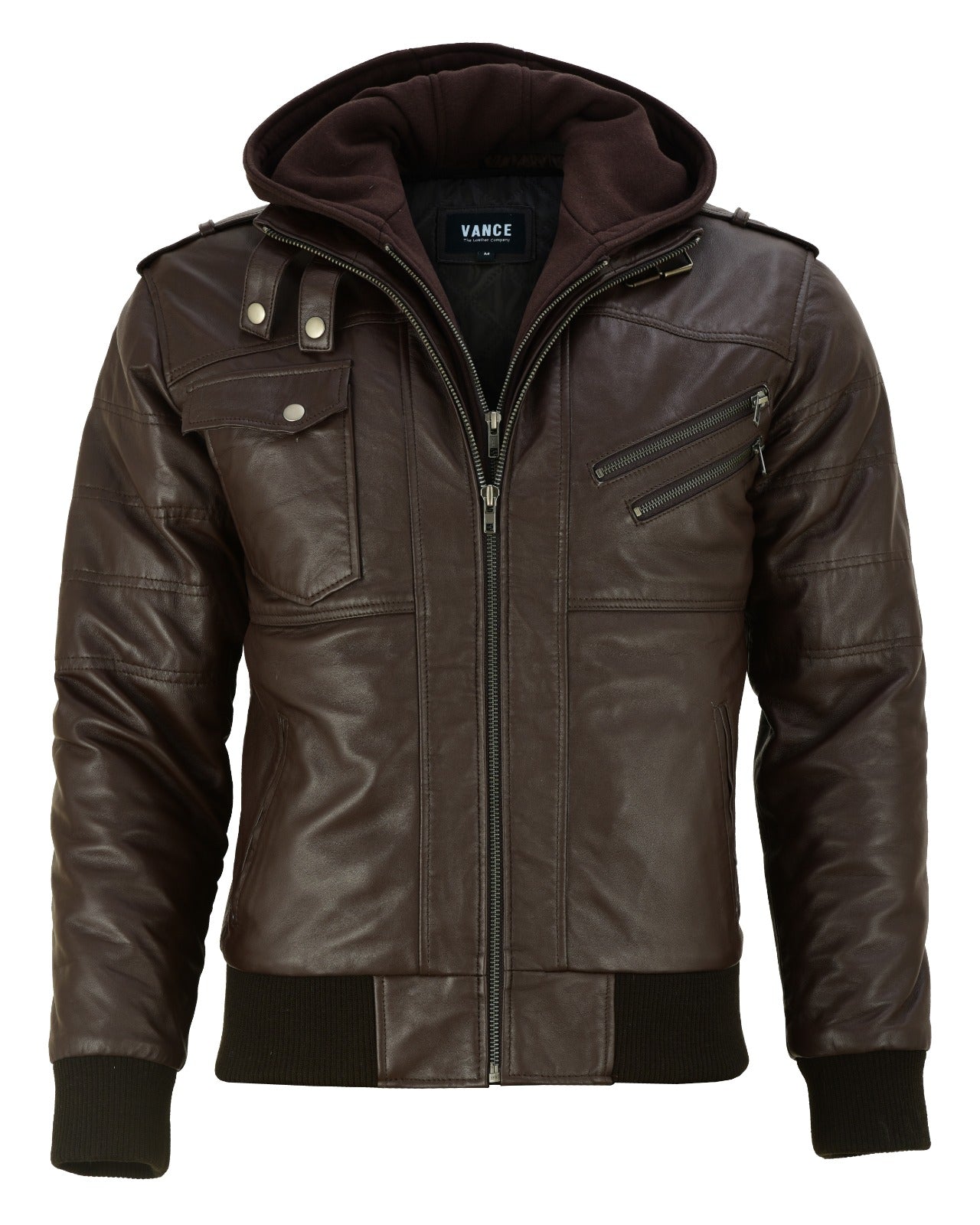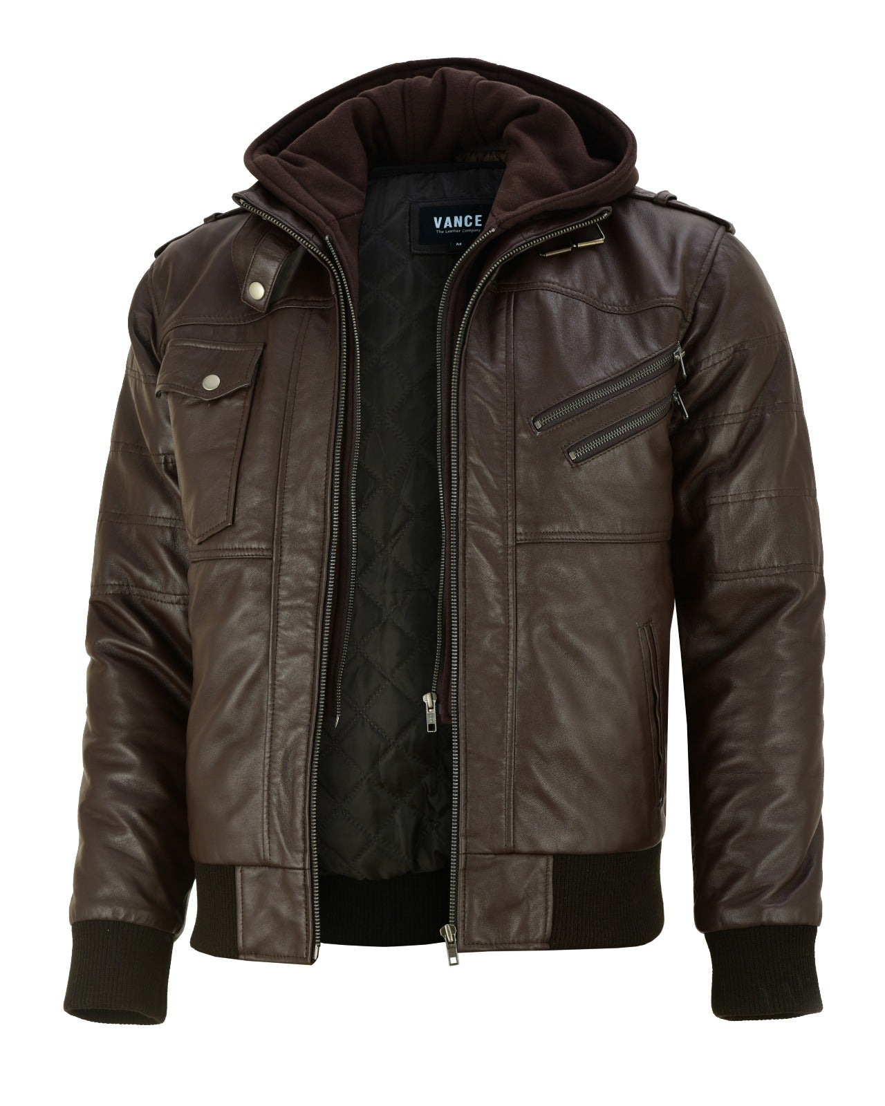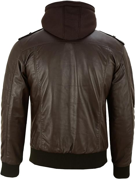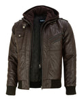 Vance Herren Echtlederjacke aus 100% Lammleder Abnehmbarer Hoodie