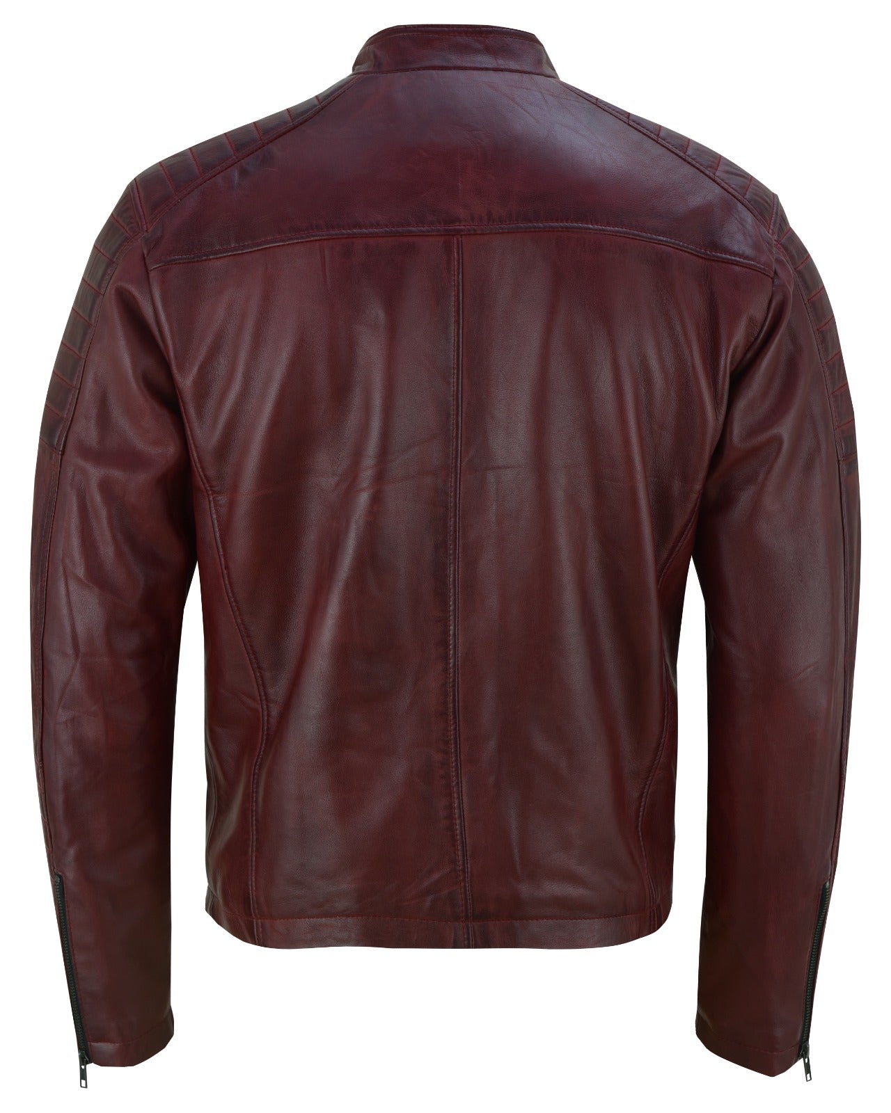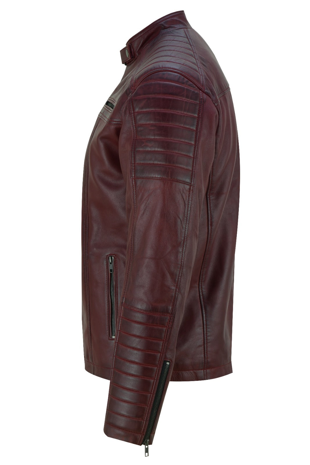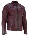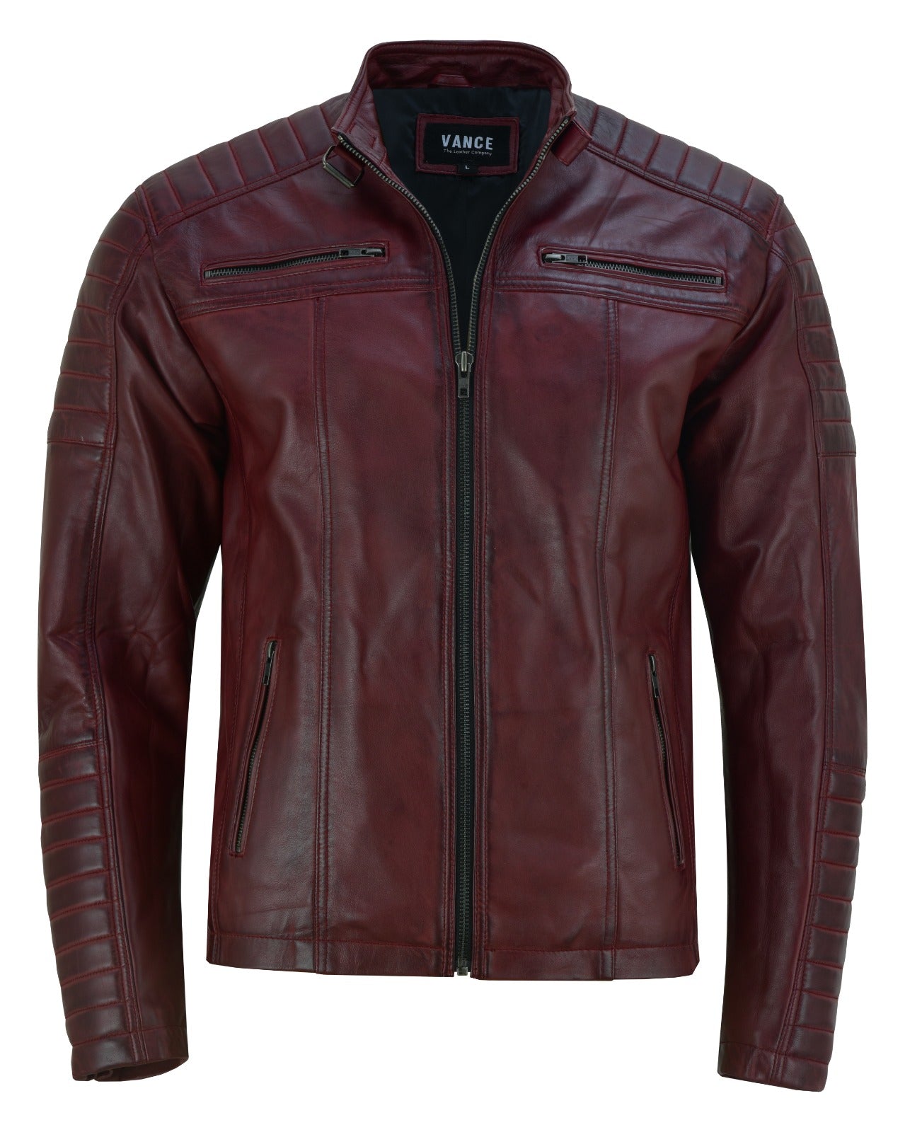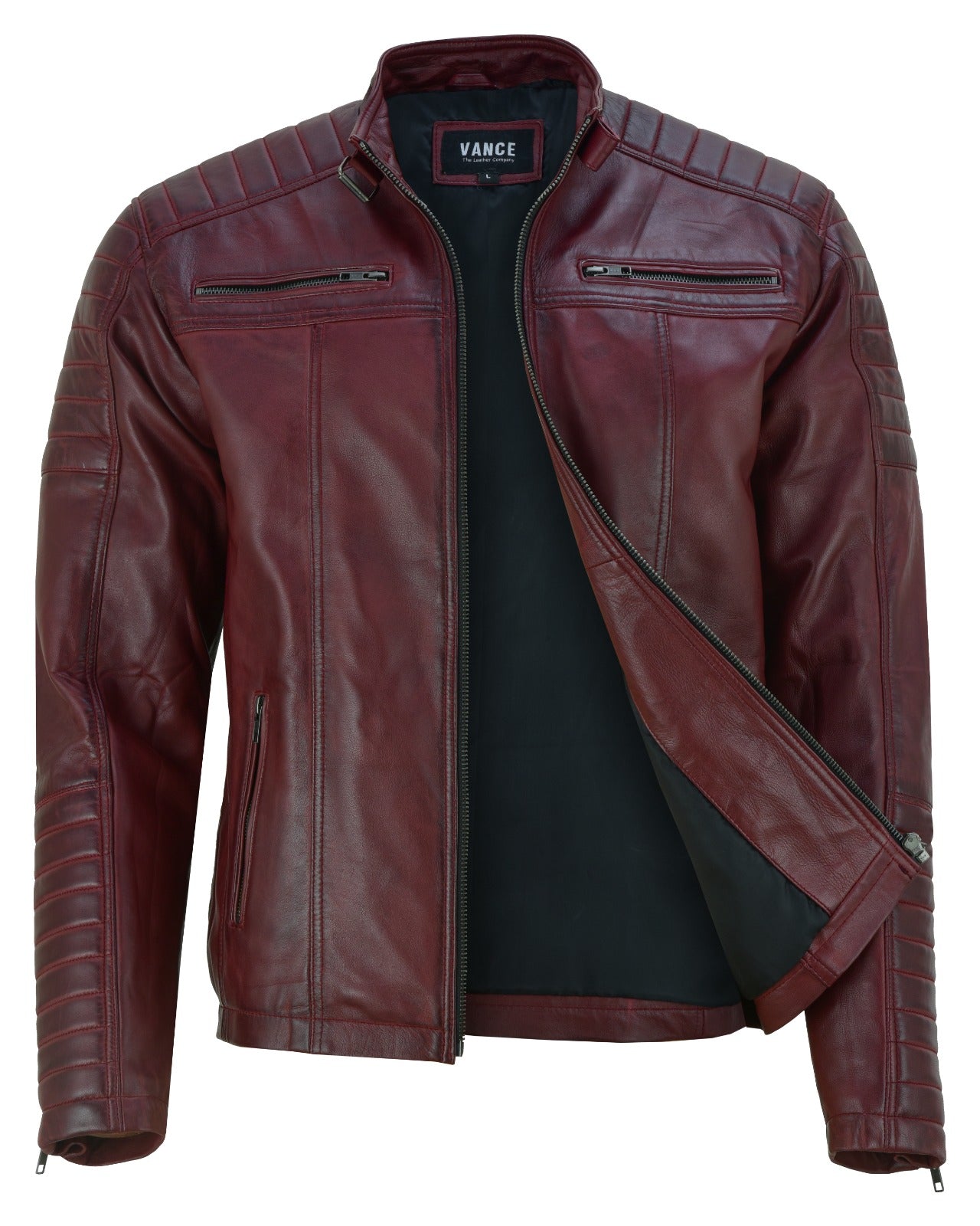 Vance Herren Echtleder Bikerjacke aus 100% Lammleder (Dunkelrot)