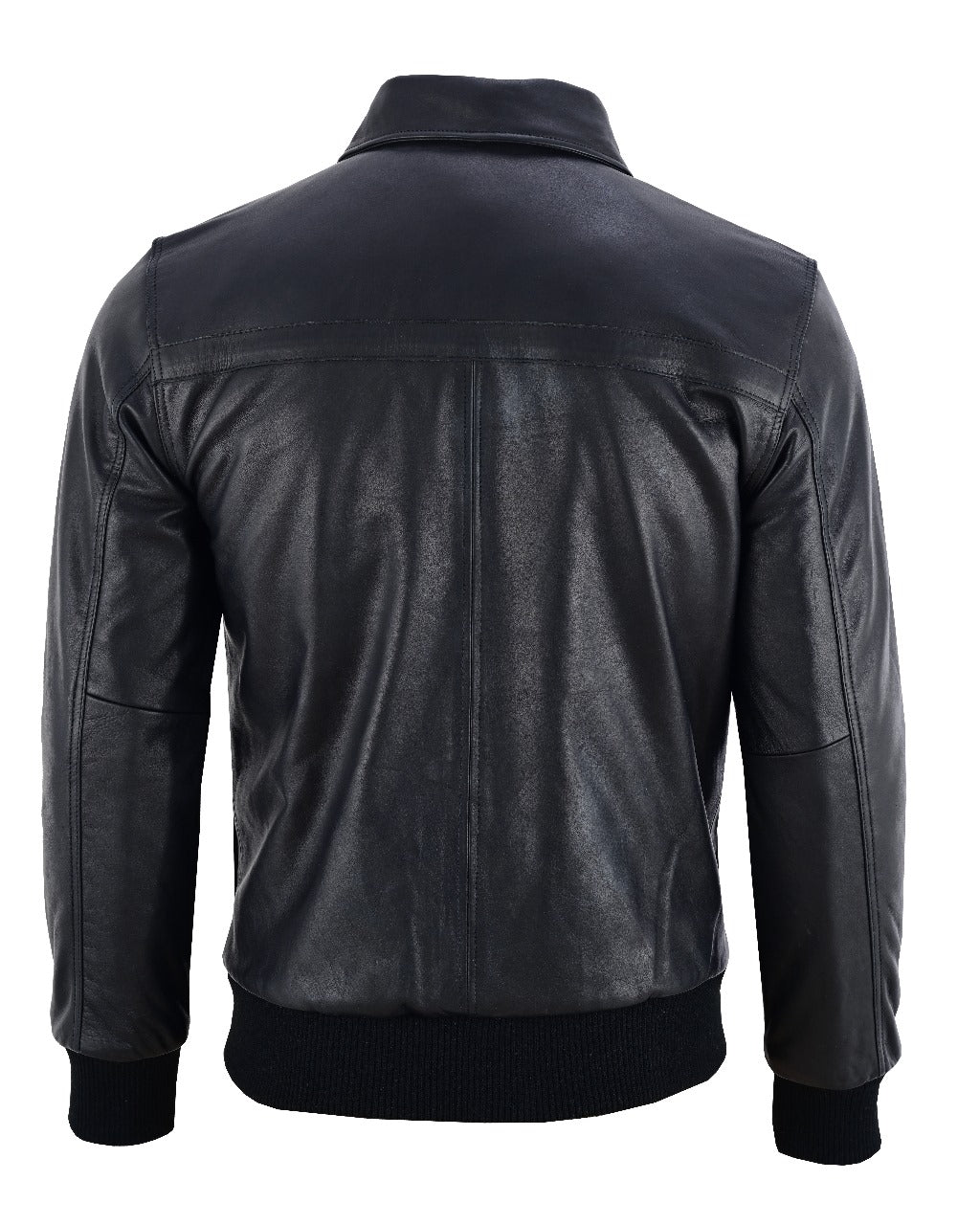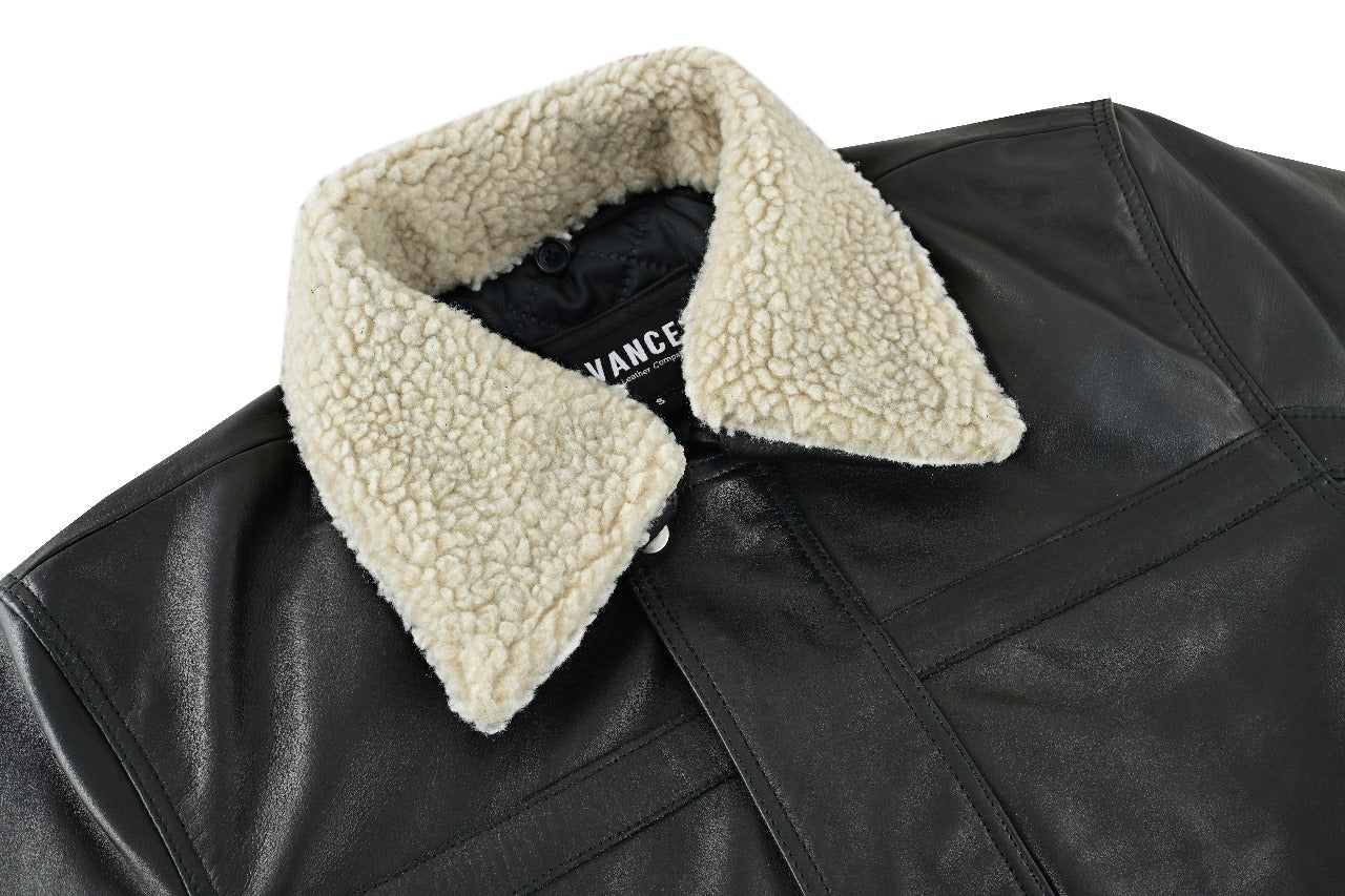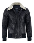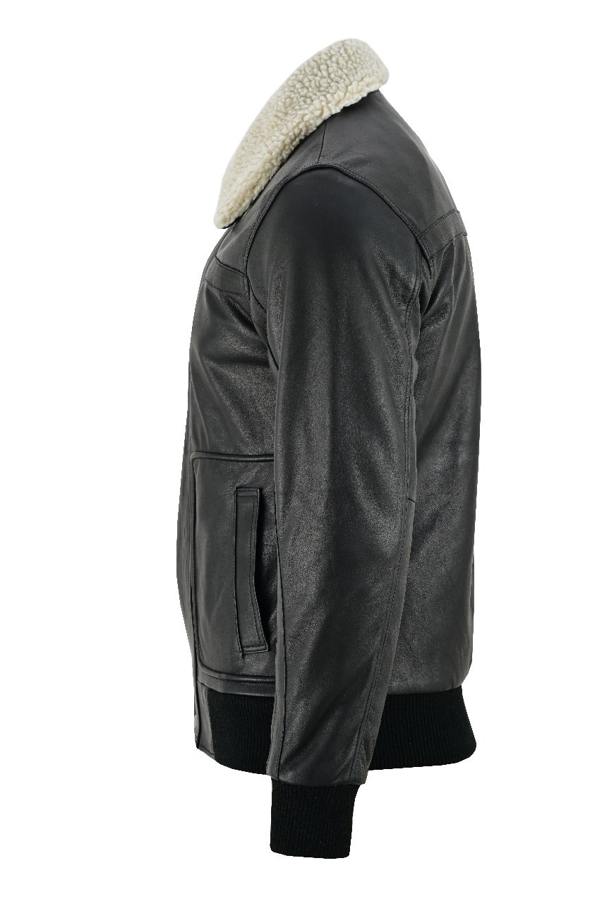 Vance The Leather Company Herren Lederjacke aus 100% Rindsleder – Echtleder Jacke mit abnehmbarem Fellkragen (Schwarz)