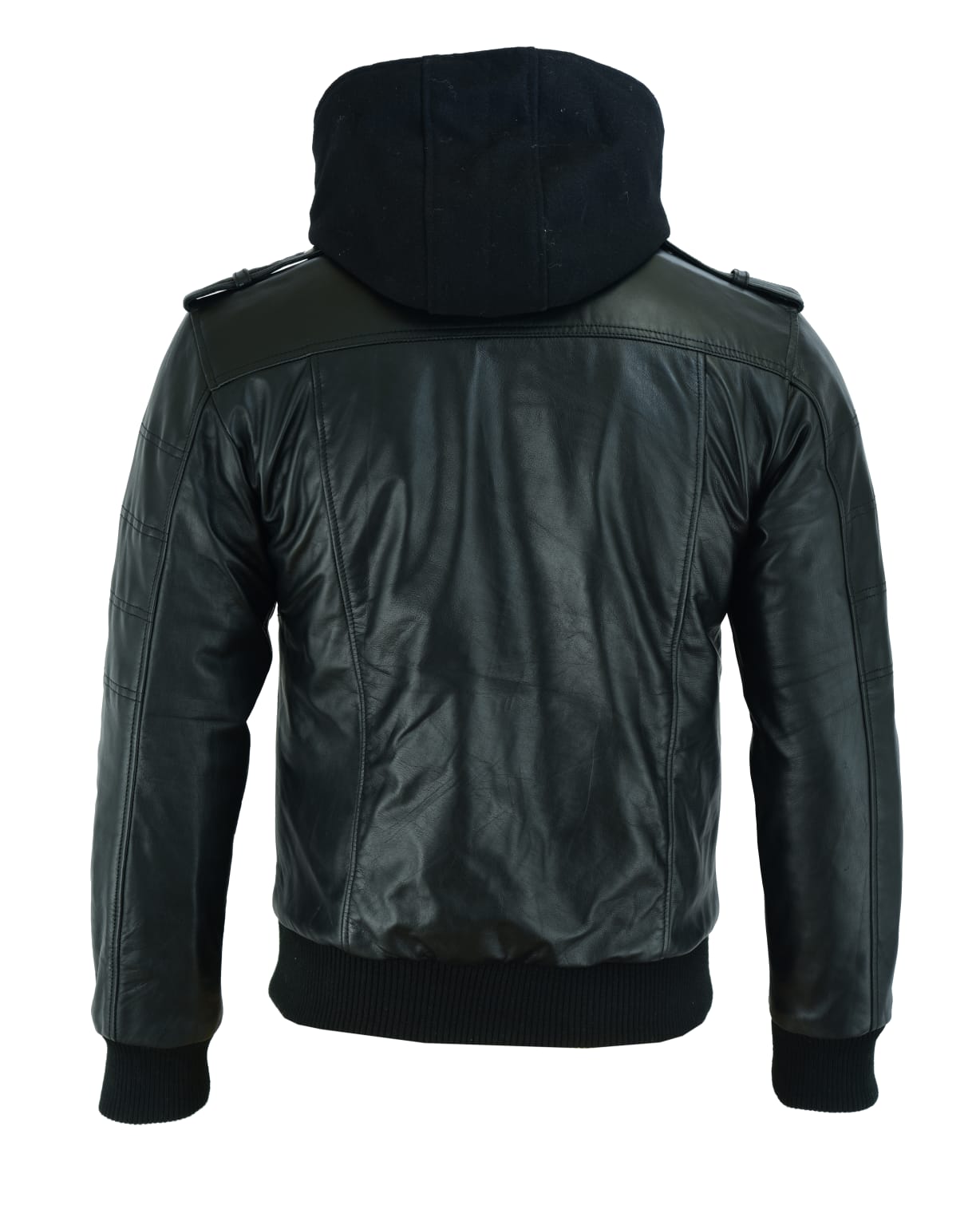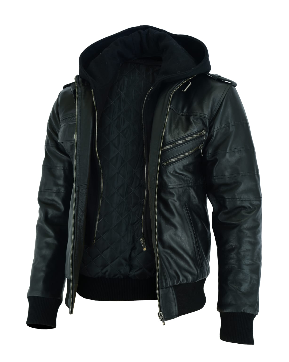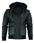 Vance Men's Genuine Leather Jacket made from 100% cowhide leather with detachable hoodie