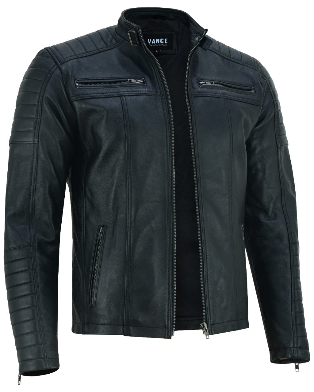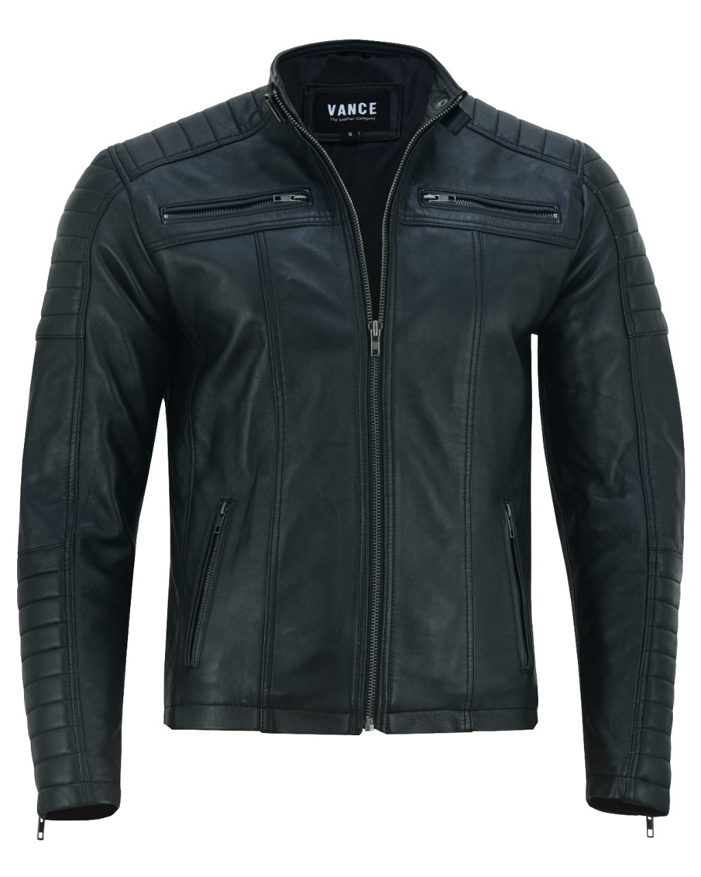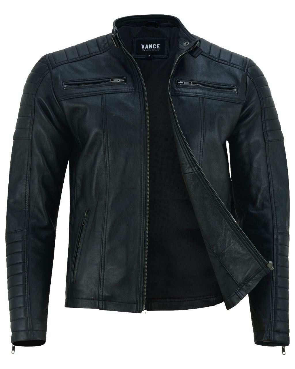 Vance Men's Genuine Leather Biker Jacket made from 100% lambskin leather (Black)